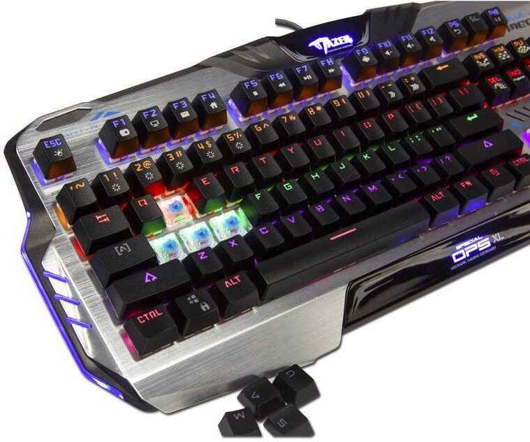 Klávesnica je kovovo vystužená pre dosiahnutie maximálnej stability. Povrch základne klávesnice je efektne tvorený brúseným kovom. Modré LED osvetlenie zvýrazňuje bočné strany klávesnice a je použité taktiež pre zvýraznenie loga Mazer.