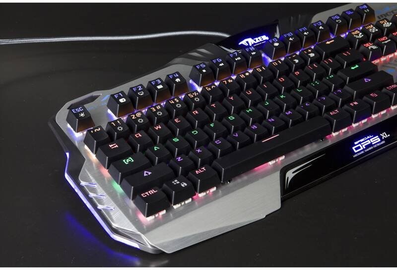 Profesionálna herná klávesnica s CZ/SK klávesami a numerickou časťou. Vymakané nastaviteľné efekty podsvietenia 6 farieb, vďaka ktorým bude hranie hier ozajstným zážitkom. Kovové vystuženie základne zaistí, že klávesnica zostane na svojom mieste aj pri najzúrivejších bitkách. Buď neporaziteľný vďaka rýchlym reakciám a uži si hranie s extra svetelnými efektami.