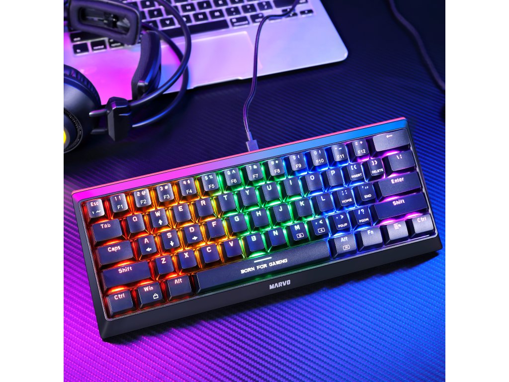 Farby, farby a len farbyAk sa pýtate, koľko farebných podsvietení má táto klávesnica - snáď úplne všetky! RGB podsvietenie klávesnice nepozná svojimi efektmi hranice a dá sa nastaviť podľa seba. Pomocou kombinácií kláves FN a príslušného tlačidla možno zmeniť ako tok podsvietenia, tak rýchlosť aj farebné kombinácie. Po stiahnutí špeciálneho softvéru od Marva sa Vám otvárajú nekonečné možnosti nastavenia a je len na Vás, aký štýl zvolíte.