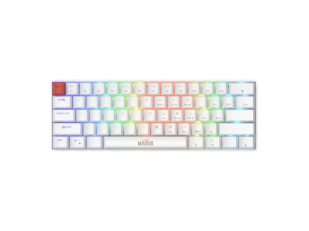 Jedným z výrazných prvkov klávesnice Marvo SABER 61 je jej dynamické RGB podsvietenie, ktoré si môžete plne prispôsobiť podľa vlastných preferencií. Farebné efekty dodajú vašej zostave výrazný štýl a umocní celkový zážitok z hry. Vyberte si z rôznych režimov podsvietenia a vytvorte si atmosféru, ktorá vás motivuje a sústredí. Podsvietenie je viditeľné aj za zlých svetelných podmienok, čo oceníte pri nočnom hraní alebo práci. Štýl, funkcie a efekt v jednom.