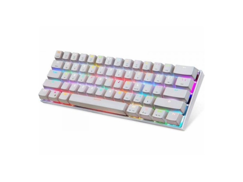 Motospeed CK62 je vybavená klávesnicou so 61 klávesmi bez číselného bloku a šípok. Vďaka malým rozmerom je mimoriadne šikovný – vezmete si ho so sebou prakticky kamkoľvek budete chcieť. Jeho bezdrôtové pripojenie Bluetooth a široká kompatibilita vám poskytujú takmer neobmedzenú slobodu. RGB podsvietenie dodáva zariadeniu skutočne herný pocit a možnosť uzamknutia klávesu Windows zabraňuje nechceným prerušeniam počas hry. Môžete si tiež prispôsobiť vzhľad príslušenstva výberom 1 z 19 režimov podsvietenia.