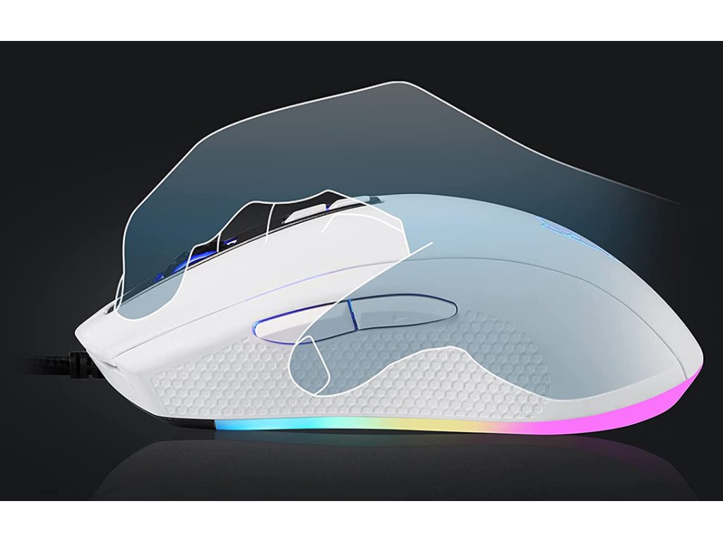 Ergonomický tvar podporuje istý úchop a lepšiu kontrolu. Povrch s teflónovou úpravou je odolný voči opotrebeniu a pomáha udržať stabilný sklz pri používaní. Myš dopĺňa dynamické RGB podsvietenie so 4 režimami, ktoré jej dáva moderný herný vzhľad.