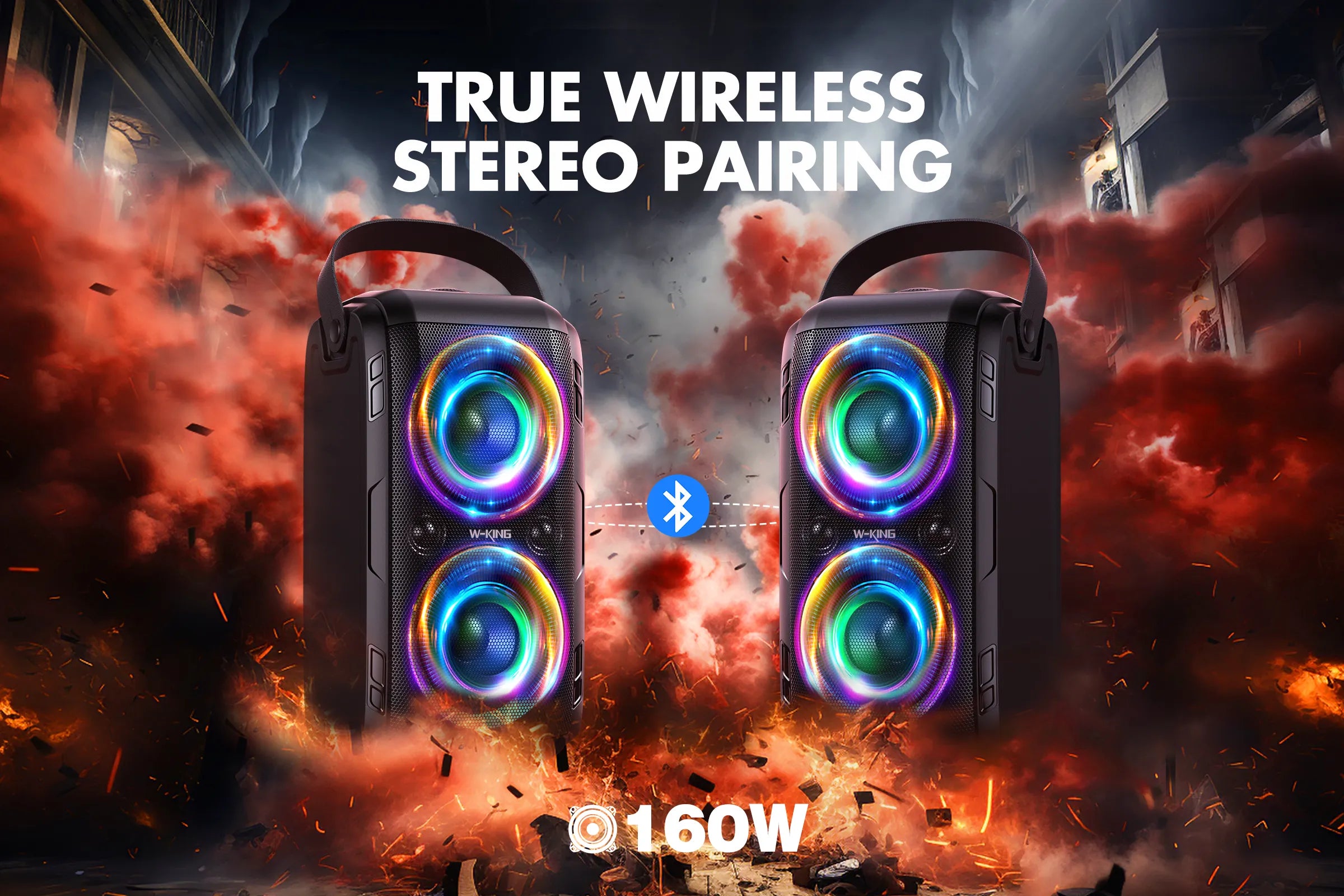 Synchronizujte dva reproduktory W-KING T9 cez Bluetooth a získajte priestorový zvuk s výkonom 160 W a 360° pokrytie zvukom. Táto funkcia je ideálna na veľké večierky, vonkajšie akcie alebo grilovačky na záhrade a vytvára koncertnú atmosféru, ktorá naplní každý kút vášho priestoru.