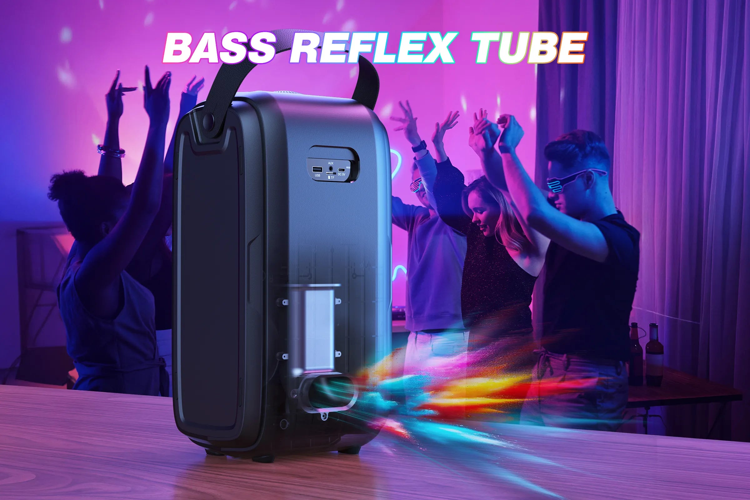 Naša pokročilá technológia bassreflexových trubíc zosilňuje nízke frekvencie a zároveň minimalizuje skreslenie, čím poskytuje bohaté a výrazné basy, ktoré sa cítia rovnako dobre, ako znejú. Vnímajte každý úder, aj pri maximálnej hlasitosti, a zažite bezkonkurenčný zvukový zážitok.