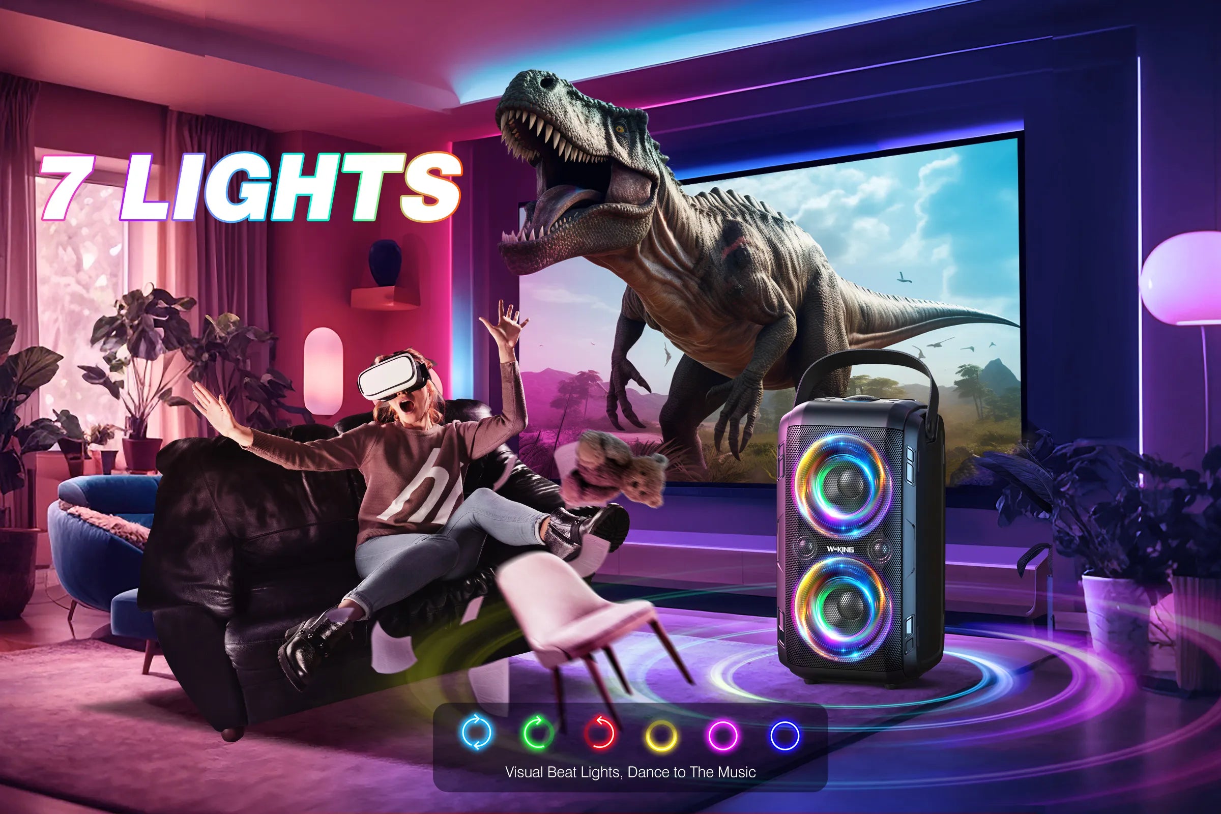 7 módov podsvietenia, Synchronizácia rytmov Synchronizujte dynamické 7-farebné LED svetlá s hudbou a vytvorte si pohlcujúci audiovizuálny zážitok. Vyberte si z viacerých svetelných režimov, ktoré zodpovedajú nálade vašej párty, premenia každú miestnosť na nočný klub a urobia každé stretnutie nezabudnuteľným.
