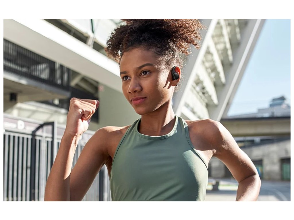 Flexibilné ušné háčiky zabezpečujú stabilné a isté uchytenie, čo oceníte najmä pri športovaní. Otvorená konštrukcia úplne neodreže okolité zvuky, takže je používanie bezpečnejšie – napríklad pri behu vonku. Ergonomické tvarovanie umožňuje pohodlné nosenie aj dlhé hodiny bez nepríjemného tlaku.